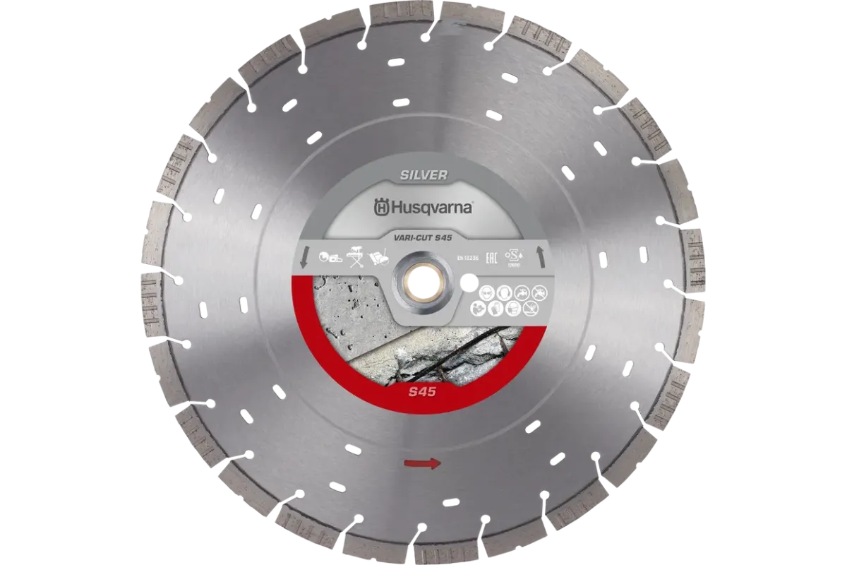 Az ezüst sorozatunk részét képező Vari-Cut S45 korong kifejezetten a különféle típusú betonok vágásához lett kialakítva. A korong két váltakozó szegmensből áll, így kisebb a rezgésterhelés és a súrlódás, valamint hatékonyabb iszapelvezetést is biztosít.
