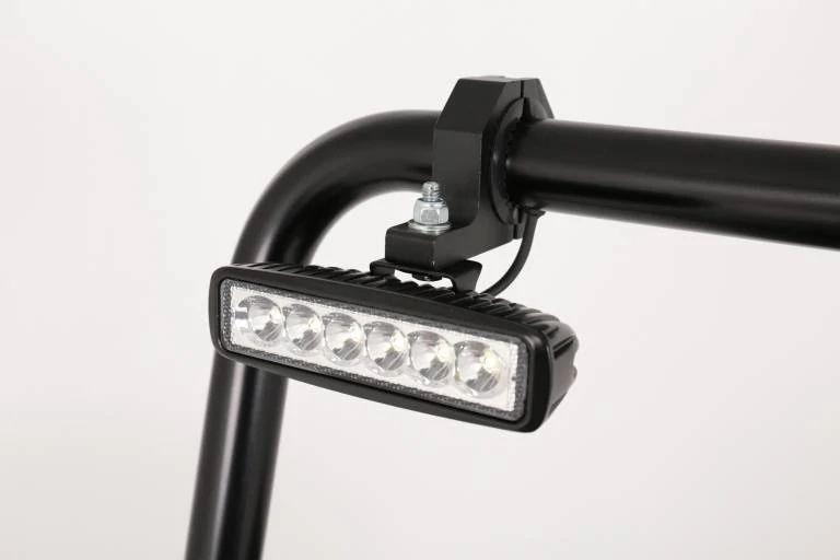 1 pár 18 wattos nagyteljesítményű LED fényszóró robusztus alumínium konzollal, kapcsolóval és kábellel a bukócsőben történő elvezetéshez.